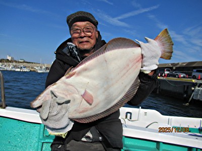 [JPEG画像]: 神奈川県からのT様ヒラメ4.0キロでの写真となりました。 -(39 KB)