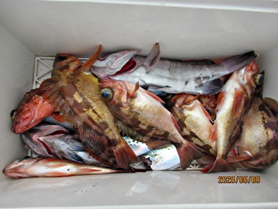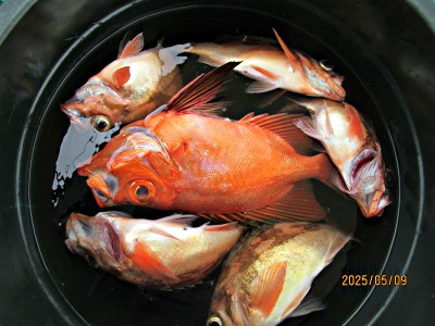 Rメバル12匹、Kメバル1匹、良型マハタ2匹、大型キントキ1匹、マゾイ1匹、カサゴ3匹、大サバキープ12本他はリリースでした。