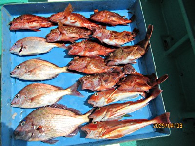 マダイ0.8キロ初め3枚、ハナダイ1枚、カサゴ10匹、ホウボウ2本、カナガシラ1本でした。
