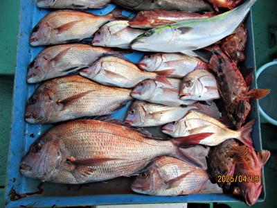 マダイ2.8、1.3、1.2キロ初め6枚、ハナダイ8枚、カサゴ4匹でした。