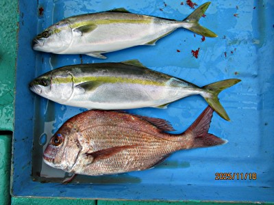 マダイ1.3キロ1枚、イナダ2本のみでした。