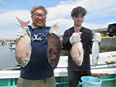 [JPEG画像]: マダイ初トライのT様とM様でした。