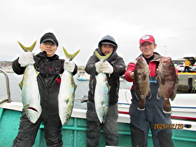 青物居ませんでした。本日の釣果イナダ1本、マハタ1匹でした。朝から曇り北西〜北〜北東の風4〜8m程度ウネリ波高大揺れでした。 水深25〜50m付近表層水温15.4〜16.4度でした。今日は強風波高の為予定ポイントに出られませんでした。 近場実績のポイントを広範囲に探りましたがベインの反応もイマイチチョロ程度で青物付いて居ませんでした。 途中良型マハタ、イナダをゲットがやっとでした。強風ウネリで大揺れの中頑張って頂きましたがお土産無しに終わりました。 お疲れさまでした。有難うございました。